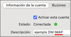Es recomendable cambiar la descripción actual de la cuenta IMAP para identificarla fácilmente, para ello se debe hacer lo siguiente: